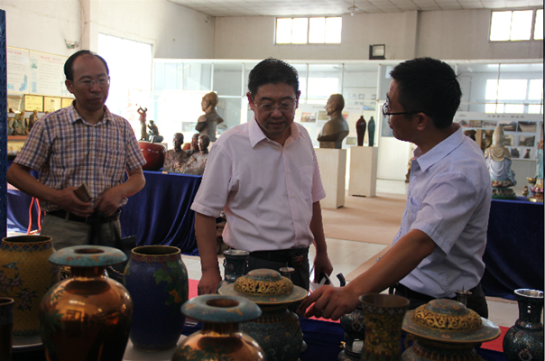 崔國發(fā)副書記與教授、博士一行深入車間一線認(rèn)真了解銅工藝生產(chǎn)工藝,隨后在產(chǎn)品展示廳與公司負(fù)責(zé)人就公司發(fā)展和校企合作開展情況進(jìn)行了交流。